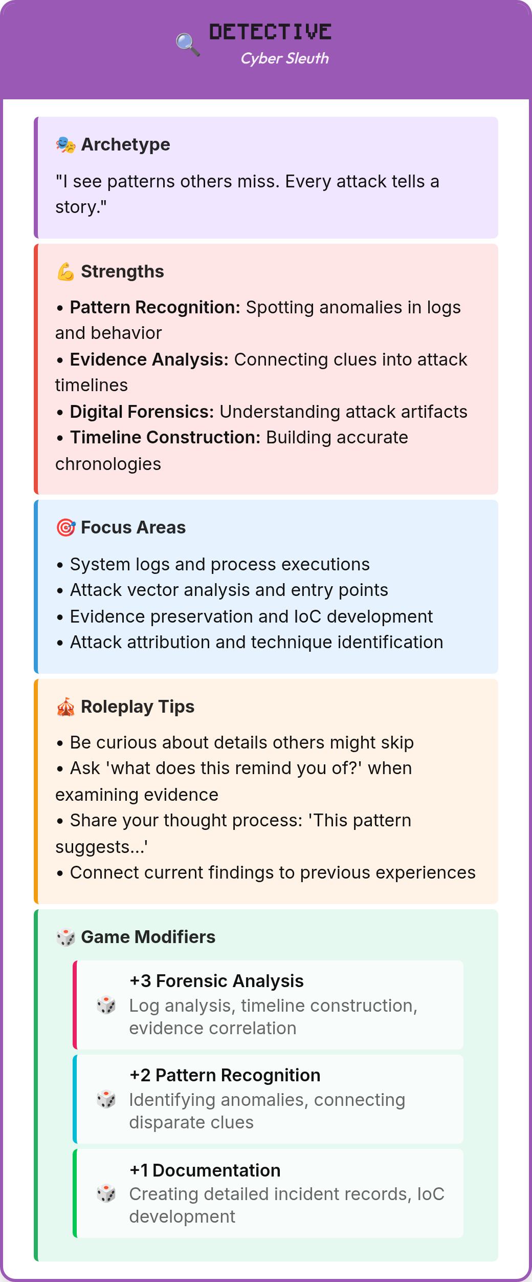 Fifth and sixth roles (Crisis Manager, Threat Hunter) suit complex scenarios with advanced malmons, multiple simultaneous threats, or other factors requiring more specialised coverage. Use the 4 core roles for your first session.