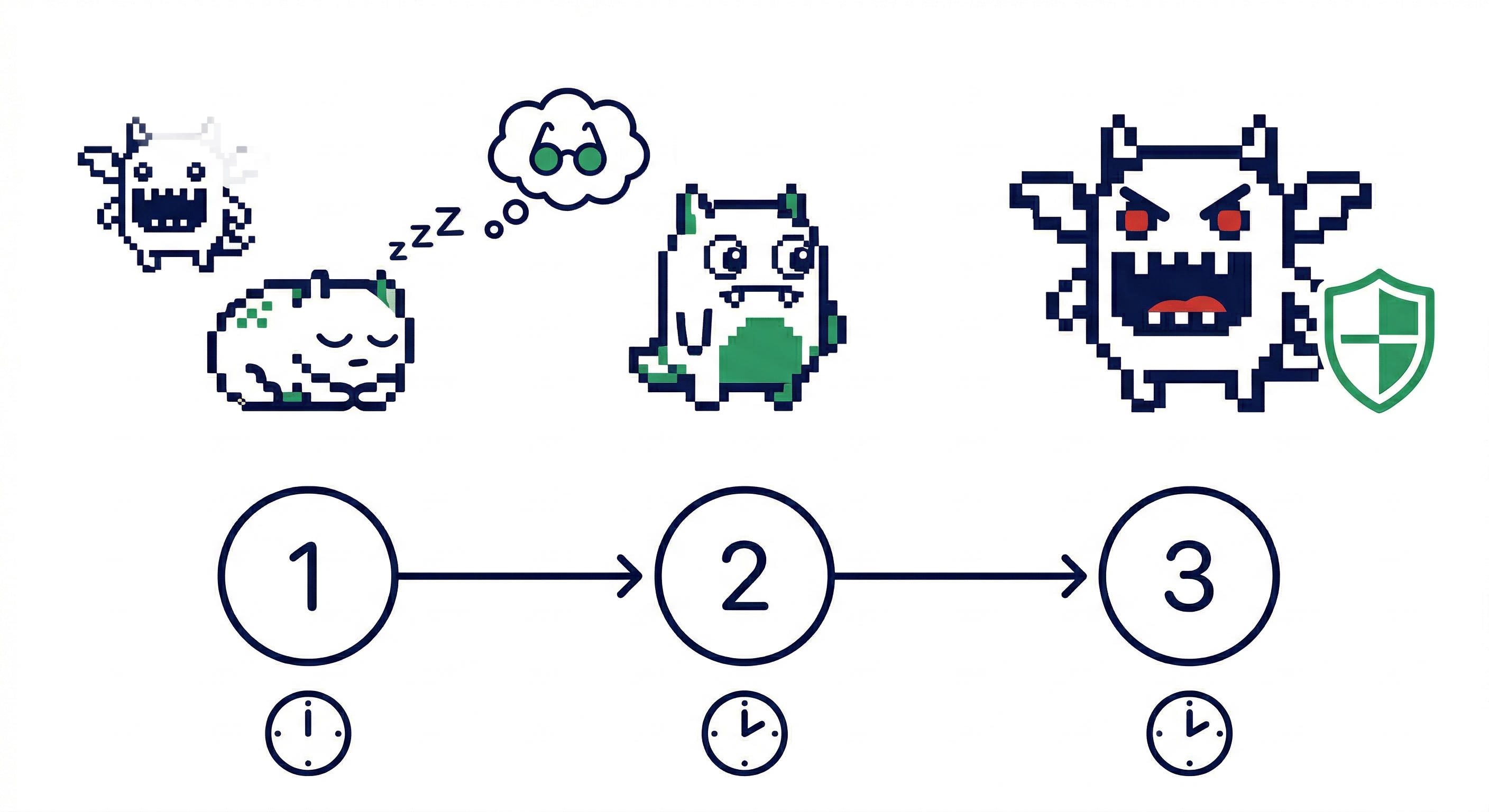 | Stats | Attack (how aggressive it escalates) and Stealth (how long before symptoms surface) |